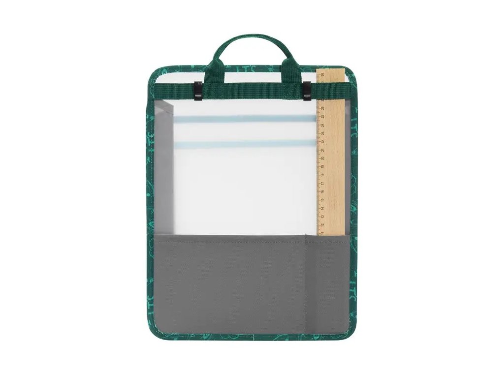 - v zadnej časti kapsa a gumka pre vloženie pravítka s dĺžkou 30 cm a trojuholníkového pravítka (pravítko nie je súčasťou organizéra)