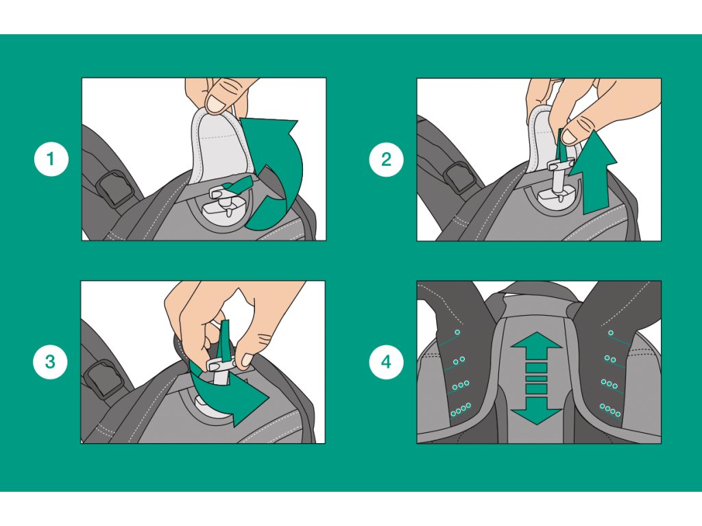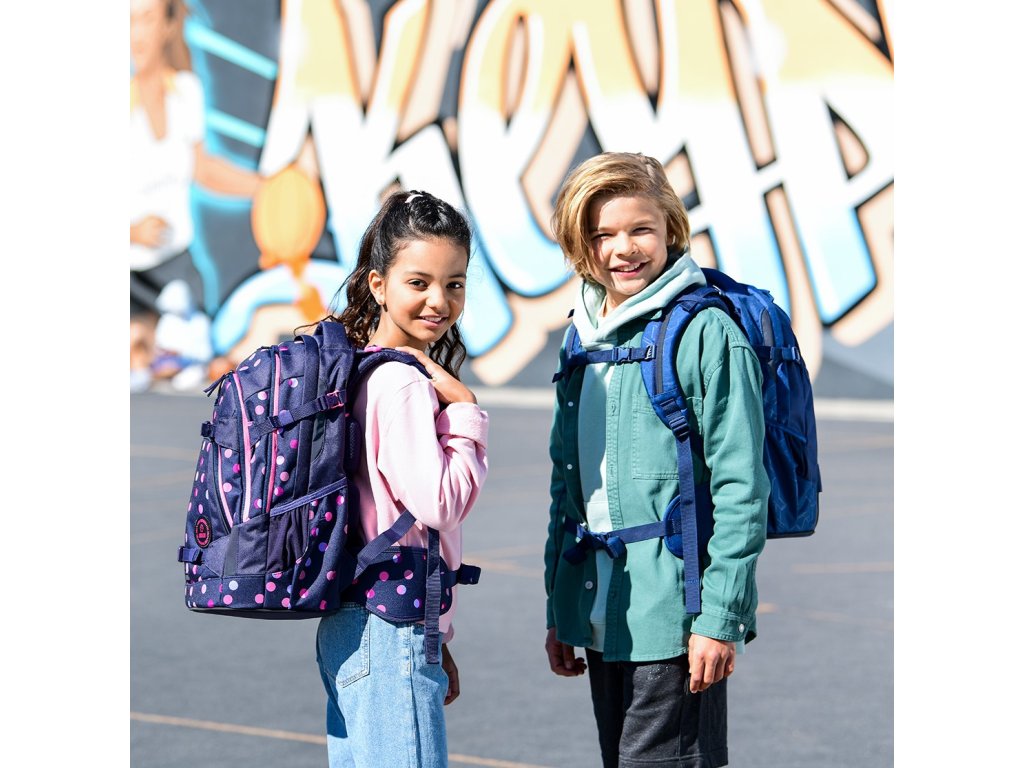 "Easy grow system" umožňuje plynulé výškové prispôsobenie ramenných popruhov podľa výšky dieťaťa od 135 do 180 cm (cca od 9 do 18 rokov). Otočný mechanizmus, ktorý sa nachádza vo vnútri batohu, umožňuje jednoduché a presné nastavenie ramenných popruhov priamo na chrbte žiaka. Ako pomôcka pri nastavení slúžia farebné bodky na popruhoch.