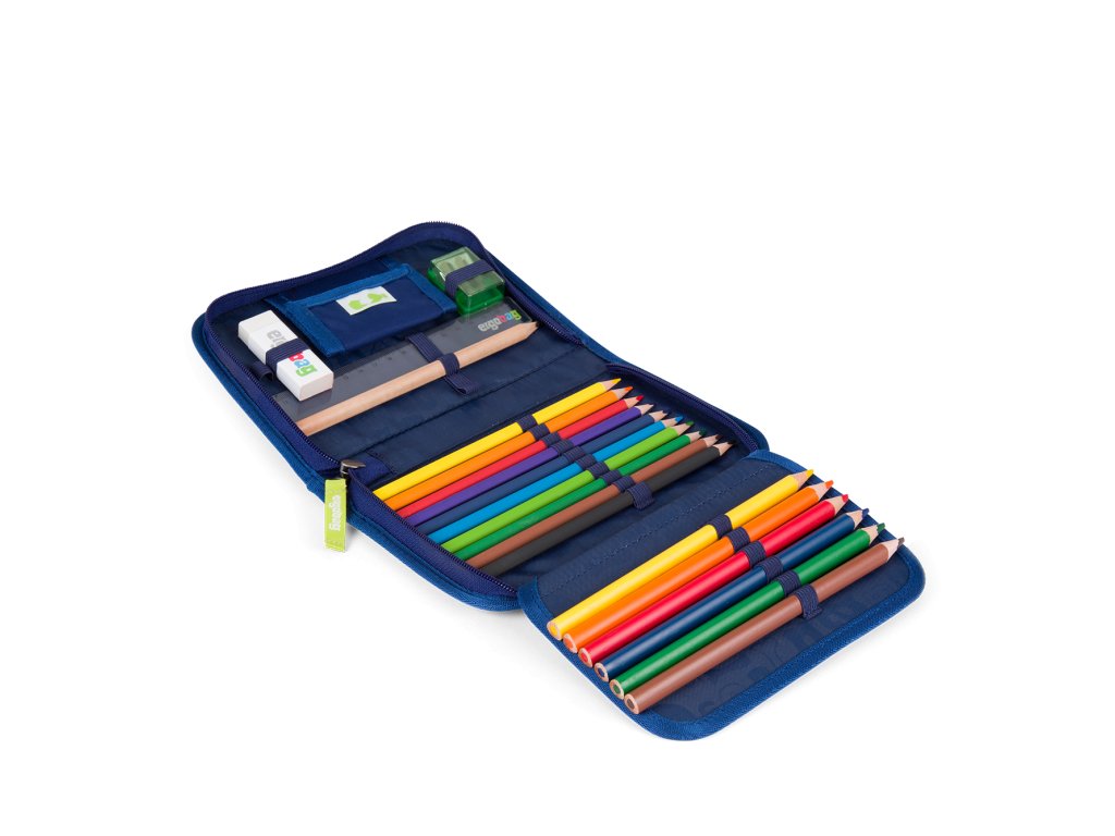 - 16 ks kvalitných farebných pasteliek trojuholníkového tvaru nemeckej značky LYRA. Hrubšie pastelky sú v základných šiestich farbách a tenšie sú doplnené o svetlé odtiene modrej, zelenej, fialovú a čiernu.