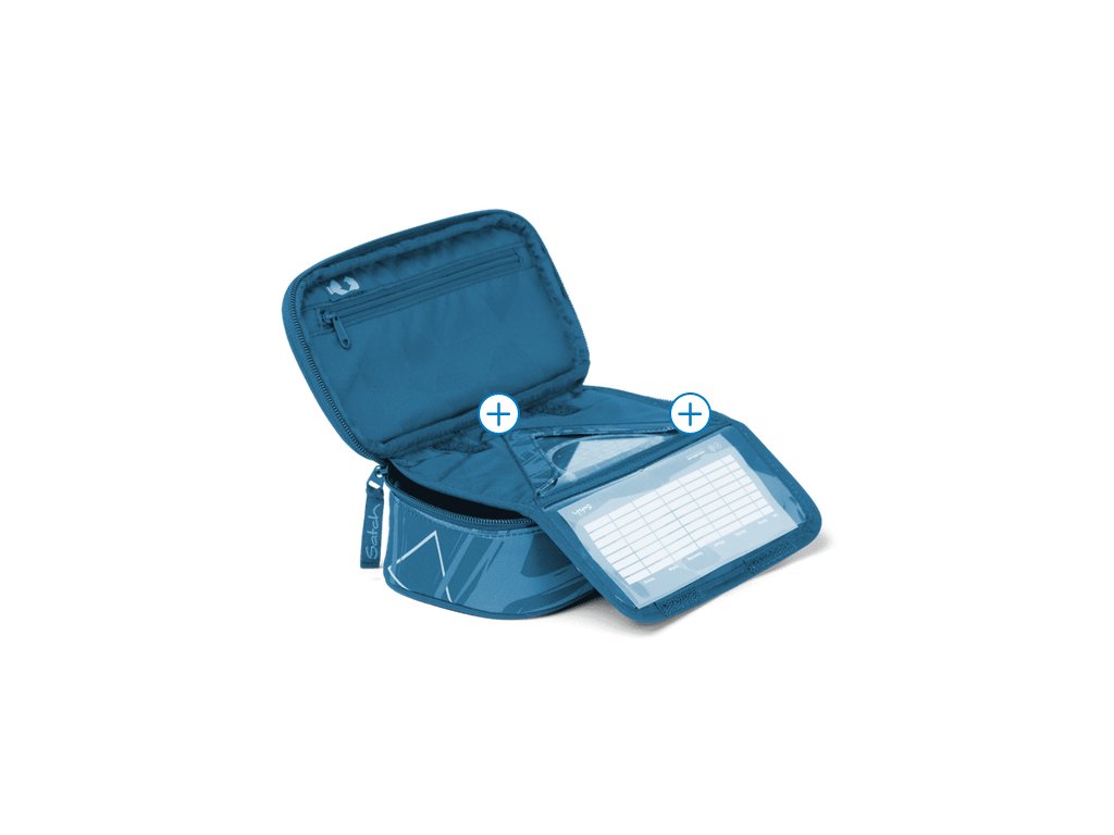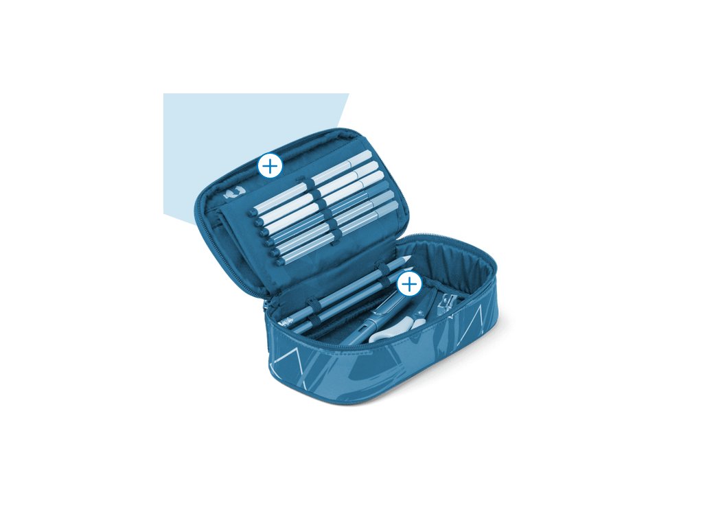 - extra veľký hlavný priestor vybavený ďalšími gumičkami na uloženie písacích potrieb po stranách